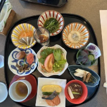 二樓大廳提供免費咖啡和排毒水 前往二樓公共浴室的路上提供免費小吃和茶水 公共浴池有1個大浴場和1個海景露天浴池。 我住的是海景房,開闊的視野很美。 早餐是送到你面前的日式餐點+米飯,味噌,雞蛋,粥和海藻,你可以去的時候拿。提供茶水及飲料 非常滿意