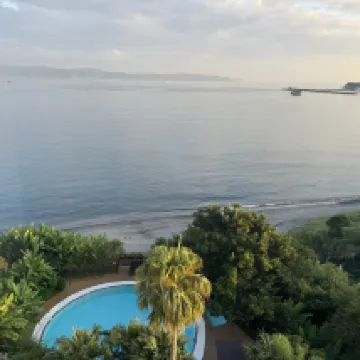 應該是指宿這個小城景色最好的酒店了。 窗外就對着大海,樓下有泳池,晚上草坪還有小煙花。 温泉也不錯,是天然的温泉,露天的,非常美。對着大海泡温泉,晚上有小巴送到指宿站。還有班車送去旁邊最好的砂浴的地方。前台小哥服務態度非常好。耐心幫忙查詢我們第二天要去開聞岳的路線。下次有機會還會再來。