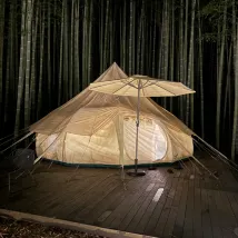 I was able to spend a wonderful glamping experience relaxing in the bamboo forest and enjoying nature! The interior of the tent was also really cute! All of the facilities were beautiful! There was also a cat, which was so cute! Tickets to the nearby zoo are also included in the price, which I think is a great deal! Dinner and dessert were included and it was very delicious! All the staff were kind and had a good sense of humor, so it was a lot of fun! Glamping made me want to go again! It was the best! thank you very much!