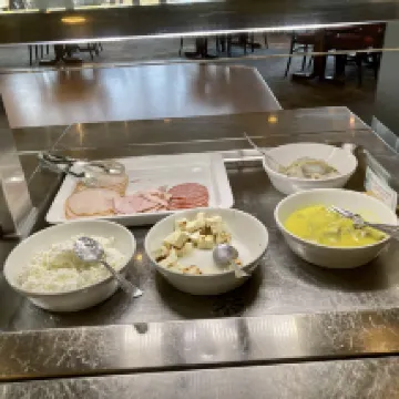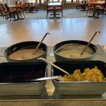 飯店工作人員很熱情,入口處的壁爐很漂亮,床上用品很舒服。這個地方乾淨又安靜。這裡可以進行的活動有雪鞋健行、越野滑雪、冰上曲棍球等。設備狀況良好。唯一的缺點是:自助餐選擇較少。早餐非常好,比其他餐點的選擇更多。晚上也缺少一些事情可做(卡拉 OK 和飛鏢遊戲可能是一個真正的亮點)。按摩浴缸和桑拿浴室都很棒。