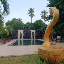 This is one of the best options to stay in Jaffna. It’s not in the city centre, more on the outskirts of the city , there’s nothing around, so you basically plan your time in the resort. The hotel itself is nice , the rooms look a bit old but clean , there was no hot water in our room. The territory of the hotel is beautiful with the pool , restaurant, little museums to visit (ex bunkers). The food in the restaurant is yummy , the staff is friendly and polite, especially Scotty , he was very helpful and nice to us during our stay. Good experience at this hotel, just the water situation in the rooms should be improved.