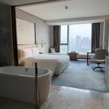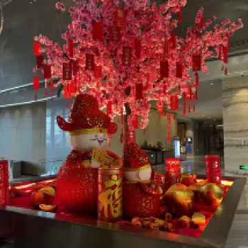 剛步入酒店大堂,很明亮,裝飾也很漂亮,春節氛圍超級濃厚,音樂也非常喜氣,家庭出行,房間給到高樓層無煙房,晚上的夜景也非常唯美,房間也是非常寬敞舒適,在住期間有一些疑問,前台接待kuromi也是非常耐心的幫忙解答,服務態度不錯