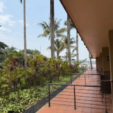 I checked into this hotel at about 3 a.m. My check in seemed to take an eternity after a day of travel and three separate flights. Breakfast is included but for some reason the hotel issues a paper ticket for each day and takes the time to stamp each one for no apparent reason. These slips of paper were collected by either the host or waitstaff on some days, but not all. My luggage was piled onto a golf cart and I embarked to accompany the very pleasant porter to my room which was in a separate building. It faced out into a parking lot and the sliding door didn’t lock. This seems to be a huge security oversight, as there are people who are not staying at the hotel on site. Actually, although there is a huge to-do at the main drive-through entry way with two separate security checks that sometimes include forcing people out of their cars to empty their pockets, it seemed to me perfectly plausible that the place could be stormed from the lake or a boat filled with explosives could be driven into the shoreline and blow the place sky high. I saw no evidence of any security along the shore, and due to the chronic flooding, there is not much space between it and the buildings. Additionally, regarding security, there is a detector at the main hotel building entryway, but no one uses it. Everyone just passes through the open doors. There is no apparent security elsewhere. So, given that there are multiple buildings on the resort campus it does seem a bit like the security is for show to a guest at the hotel. They kindly changed my room the next day to a room with an interior garden view after I complained about the inability to lock the sliding door to the balcony. The room was simple but nice, with a mosquito net over the bed (although it had holes in it (defeating the purpose) which I sewed up with my own thread and needle brought from home). There is shampoo and soap provided, and there is a small mini fridge and a safe for valuables in the room. However, there were no slippers, dressing gowns, sewing kits, etc. that one would expect in a hotel billing itself as a luxury establishment. The gardens are gorgeous and are maintained by women, who also shovel the horse droppings that fall on the roads into the flowerbeds. These are due to people riding through from the riding school next door., which is a part of the resort. Not all the restaurants were open during my lengthy stay. The one by the shoreline is inaccessible due to flooding and I believe it has been closed for years. The shoreline has been flooded for at least four years. mainly ate at the main one. The food was good, but after a week or so I was really tired of it. Some nights I had room service, but I found there wasn’t actually a lot I wanted to eat after a few nights. I tried the banana stew which was fantastic, and served in the restaurant piping hot, but massive and I couldn’t eat even half of it. The vegetable wrap was also good, but after eating it three times, I couldn’t bear