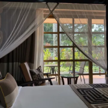Magnifique endroit pour passer des vacances loin de tout. Personnel tres a l’ecoute, ca donne envie d’y passer des vacances en famille . La vue sur le lac victoria est superbe ! La temperature etait agreable, la végétation chatoyante mais il faut je n’ai pas testé la piscine qui a l’air sympa