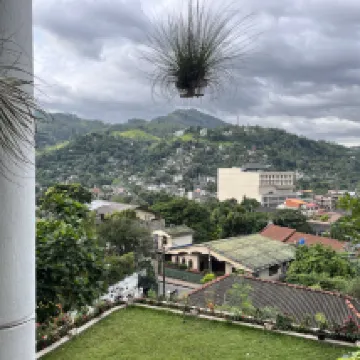 A short tuk tuk from the bus and train station took us to the property. Access to the reception area and room is up a very steep, short hill, which we knew, and should you need help with your luggage this is available. The view from our balcony was beautiful and the possibility to sit outside and relax with a little outdoor kitchenette was a terrific bonus which we enjoyed. A full sized fridge freezer, with complimentary tea, coffee, creamer, cutlery and crockery were available with a kettle and microwave. Kandy town is walkable and there is a small shopping mall ten mins away on foot. You can also reach two bar/ restaurants and a good Indian restaurant on foot close to Marvel Hills. Breakfast was varied and delicious and our host gracious, informative, helpful and available should you perhaps need to organise transport at a fair price. We very much enjoyed our stay which was peaceful, comfortable and our accommodation clean, roomy with the additional bonus of satellite TV, good aircon and excellent WiFi. Highly recommended.