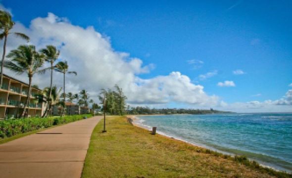The resort is located in the historic town of Kapaa, Kauai. You can catch the sunrise in the morning over the Pacific Ocean or even see whales during migrating season. The resort is within walking distance of restaurants, boutiques, shopping and grocery stores.