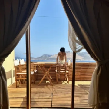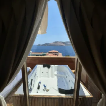 В данный отель мы переселялись прямо на месте. Был свободный только номер пентхаус. Номер гигантский, так же есть балкон со столиком, шезлонгами и джакузи, и видом!!!! Просто потрясающем❤️ Очень доброжелательный владелец и персонал! Все по-домашнему, спокойно. Завтраки очень вкусные, каждый день что-то новое.