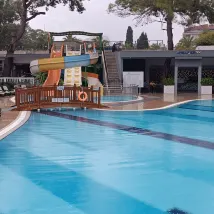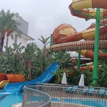 Никому не советую оказаться в этом отеле. Мы приехали поздно, ужин закончился, но еды никакой нет, даже за деньги заказать что-то невозможно. Но это еще ладно. Заселили в номер и начался ужас! Номер на цокольном этаже с видом на мусорный бак и курилку сотрудников - вот такой вот standard view. Номер весь раздолбанный, мебель поломана, в ванной плесень, воняет канализацией, везде какие-то дыры в стенах. Входная дверь с огромной щелью, через которую слышно все: лифт, персонал, других отдыхающих. Но самое ужасное это муравьи, полчища муравьев, которые залезли везде: в чемодан с вещами, в косметику, в холодильник. Они были просто везде! И это у них называется 5 звезд ♀️ ужас! Мы много где бывали, в Турции в том числе, но такое я видела впервые. На следующий день пришли на ресепшен с просьбой поменять номер. Нам ответили, что без проблем. После обеда постучался сотрудник и сказал, что номер готов. Но у нас была запланирована встреча с гидом и мы просили перенести заселение в новый номер на 5 вечера. Вечером никто не пришел. Пошли сами на ресепшен, там удивляются и говорят, что свободных номеров нет. После долгих объяснений, что мы договаривались, что номер не пригоден для проживания ввиду его убитости и наличия муравьев, что это не соответствует 5 звездам, нам все таки сделали великое одолжение и показали номер. Номер оказался с видом на аквапарк и одной кроватью на двоих с ребенком. Хотя мы изначально оплачивали номер стандарт с двумя кроватями, который выходит чуть дороже, чем с видом на аквапарк. Вернулись на ресепшен, нам сказали, что других свободных номеров нет, приходите завтра в 9 утра. Нас даже записали в какую-то книжечку: что завтра в 9 утра новый номер будет готов и он будет соответствовать всем нашим требованиям и оплаченной за него суммой. Естественно, на следующее утро номеров свободных не было и даже на мои просьбы посмотреть в вашей волшебной книжечке, что мы там записаны не увенчались успехом. Сказали теперь прийти в 12 к ним… За двое суток таких приключений это стало утомлять и терпение закончилось. Пришлось ругаться и сразу же номер появился: в другом корпусе, на цокольном этаже и… опять с муравьями! Опять вернулись на ресепшен, где я уже просила вернуть нам деньги за оставшееся время пребывания в этом ужасном отеле, чтобы мы могли найти себе другой нормальный отель, соотвествующий 5 звездам с адекватным персоналом. И тут наконец-то появился менеджер, которая очень быстро подобрала нам другой номер без муравьев, в главном корпусе на 3 этаже. Если хотите в отпуске испытать стресс и ругаться со всеми - вам сюда. В любом другом случае рекомендую выбирать любой другой отель, но только не этот! И еще пара нюансов, которые тут можно встретить: - Кондиционеры в номерах расположены над кроватью или направлены на кровать. Достаточно шумные и практически никак не регулируются. У кого-то в номере они не работали и отдыхающим также приходилось ругаться на ресепшене по этому поводу. - Еда к концу недели скудеет на выбор, мясо по вкусу напомина