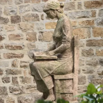 Goed bed en rustige plek met mooi uitzicht op de tuin waar kunstwerken staan.