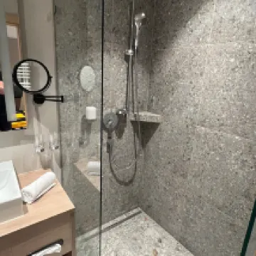 Mooie kamer, upgrade! Weer geen Nespresso koffie machine of thee op de kamer, weer maar 1 stopcontact naast je bed! Fijne douche, dunne handdoeken. Geen airco. Rolluik dus lekker donker en stil ‘s nachts. Fantastisch ontbijt.