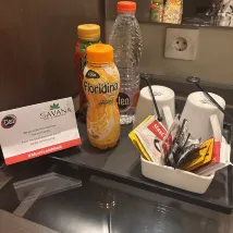 In omaggio in camera acqua, caffè e bibite “free of charge”