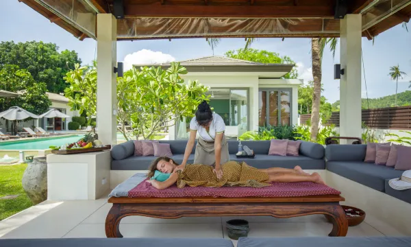 這個別墅位於蘇梅島,緊鄰海灘,距離納通碼頭和達靈巖海灘不到 15 分鐘車程。 此海灘別墅距離拉邁海灘 9.3 英里(15 公里),距離查汶海灘 15.9 英里(25.5 公里)。