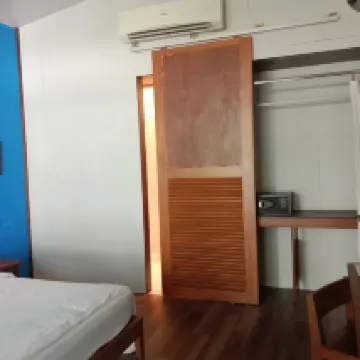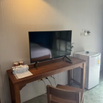 我要給這個酒店好評,準確的講,稱他為旅館更合適,我是臨時出遊,訂酒店很頭疼,合適的都沒有了,特別是一家三口孩子又比較大,前面兩天住的Awa,一天住馬路對面,一天住海邊,我看人家説阿瓦多好,我真不覺得,第一天對面的房空調很響,馬桶漏水,第二天海邊的房電視壞的,而且電視還很小,我感覺阿瓦老了。説這個階段,好評的主要原因當然是價格便宜,本來想是先訂着,到了後看一下,如果不好再退,後來實在不想找,就碰碰運氣,後來入住,感覺對的起這個價。還是比較乾淨輕爽的。每個床頭都有充電口,照明燈,床也硬度適合,最主要床多,非常適合孩子大要佔一個床位的,如果二胎家庭也合適。早餐是太簡單了,沒東西吃,麪包雞蛋牛奶咖啡麥片炒飯,沒為法,房價擺在那裡。房裡並排兩個臉盆方便洗衣,就是桌子太少,衹好搬了門口的桌子。安靜還是安靜的,因為房子是鋼構的,樓上聲響清晰可見,但總體周圍環境還是安靜,比過道上的房聲音輕。對,有人説沒熱水壺,是的,但在泰國要這個幹嘛。電視比Awa大,也有cctv4。