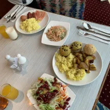 客服服務非常周到,購物和尋找食物都很方便。早餐種類豐富。停車位有限。