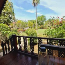 Really enjoyed our stay. Quite far from everything but there are some supermarkets and food places within few minutes walk. The room is like a wooden beach hut with large verander. Unfortunately there was nothing to prevent mosquitos entering. Pool area and sea view were beautiful and staff were very friendly. Bed very hard with one itchy fleecey blanket.