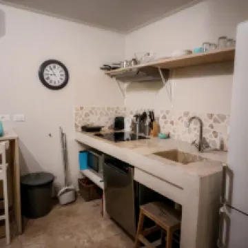 Really big bedroom with all necessary to cook meals. Good balcony, good wifi, super comfy bed, beach towels.