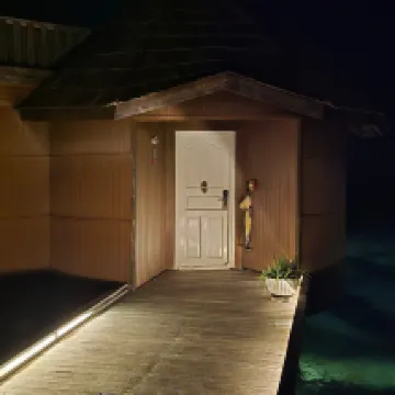 Diese schöne kleine Barfuß-Insel ist top. Unsere 6. Malediveninsel und es war alles bestens. Das Thema Essen wurde oft bemängelt und wir können sagen das es die geringste Auswahl von den 6 Inseln hatte aber dennoch viel zu viel und gut. Eigentlich buchen wir nur HP, hier gab es nur Vollpension oder AI. Das Frühstück war nicht üppig und deshalb voll gut mittags noch mal schön zu essen. So mussten wir am Abend oft beim Menü ein Gang weg lassen oder beim Buffet weniger nehmen, alles toll. Die gesamte Mannschaft ob Manager, Mädels vom Empfang, Roomboy, Kellner, Barkeeper, Divingcrew oder Gärtner, wirklich alle waren sehr nett und freundlich. Wir haben uns sechs Massagen gegönnt und die Mädels können was am Körper. Lieben Dank an alle für zwei tolle Wochen im Deluxe Bungi Nummer 5! Wenn man ankommt mit dem Wasserflieger, was gut organisiert war, herzlicher Empfang, ok, da wir die einzigen Gäste mit dem Flug waren hatten wir kaum Zeit unsere Früchte zu genießen, alles ging dadurch schnell. Man bekommt sofort aufs Handy in WhatsApp den Kontakt und dadurch ist man sofort über alles auf Italienisch und Englisch informiert. Nika Island hat zu den vier Stunden Zeitverschiebung von Male noch mal zwei Stunden, also sechs Stunden. Das ist erst komisch aber so ist es immer bin ca acht bis acht hell und nicht von sechs bis sechs. Am Abflugtag kam es uns wieder zu Gute, da wir um zwölf mit Condor nonstop nach Frankfurt fliegen, ist Abholung erst um 10:30 Uhr mit dem Wasserflieger, so ist ausschlafen und Frühstück möglich. Frühstück ist erst um neun, Mittag um zwei und Abendessen um neun, jeweils anderthalb Stunden. Alle haben eigentlich bemängelt das es beim Frühstück und Abendessen wenigstens halb neun sein könnte. Ist voll auf Italien ausgerichtet aber gerade von den Tauchern war täglich zu hören das sie kaum Zeit für Frühstück hatten. Über diese halbe Stunde morgens wie abends sollte wirklich mal nachgedacht werden da es uns wie vielen Deutschen und Schweizern gerade am Abend arg spät war. Schön wäre wenn man das kleine Museum auch allein ansehen könnte. Es gibt nur Führungen auf Italienisch und Russisch und natürlich mal Englisch. Zum Bungi, wir würden nie eine Wasservilla buchen da für uns Sand, Palmen und Wasser zusammen gehören aber das ist ja zum Glück Geschmackssache. Jeder Deluxe Bungi ist vom Strandabschnitt etwas anders, ich würde nicht wirklich einen empfehlen da es auch wieder jeder anders bewertet. Vielleicht einfach überraschen lassen und ggf. tauschen … das geht bestimmt wenn man freundlich fragt: wenn vielleicht auch ein Tag später. Die Deluxe-Bungi sind eigentlich viel zu groß, braucht bestimmt keiner aber dadurch hat man einen schönen breiten Strandabschnitt in Süd-Westlage, das beste Riff vor der Tür. Mit Maledivenschaukel, Hängematte, zwei fette Liegen und zwei Wasserliegen. Der separate Unterstand mit Jacuzzi und Stühlen bestimmt bei Regen top, hatten wir nicht. Eine große Flasche Wasser ist täglich dabei, es sind alle Steckdosen für Deut