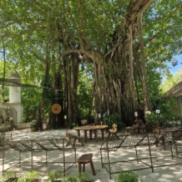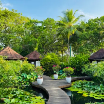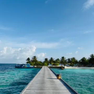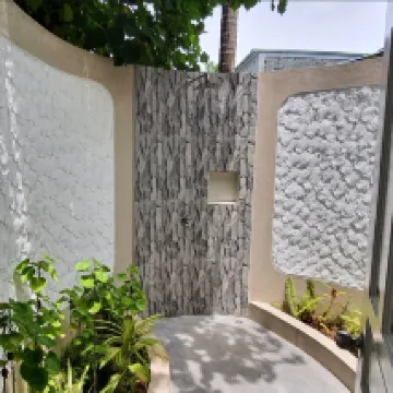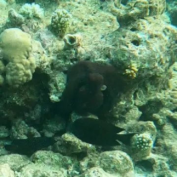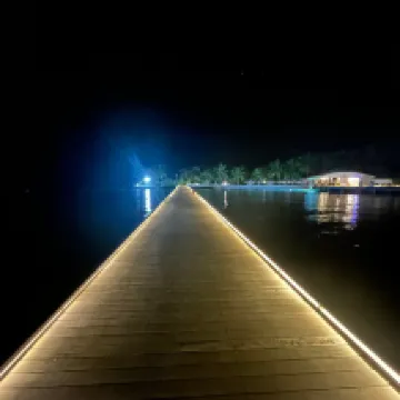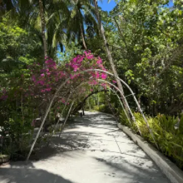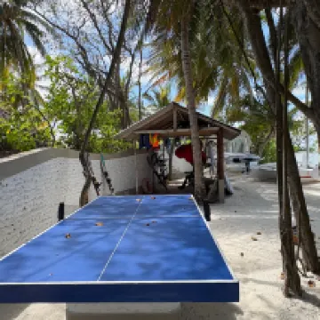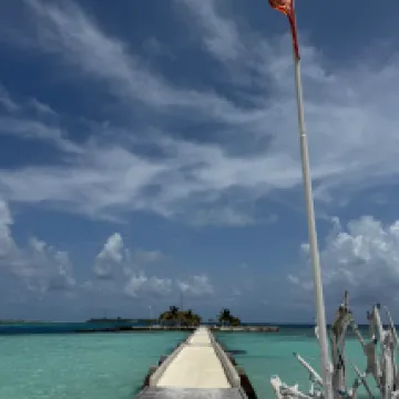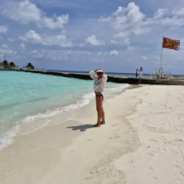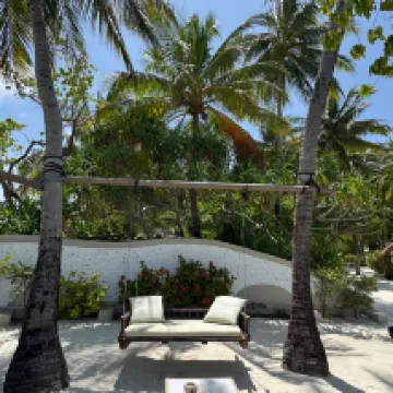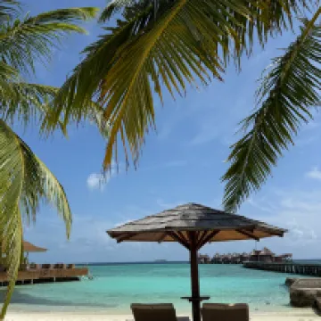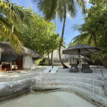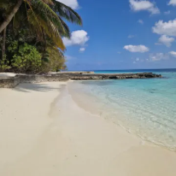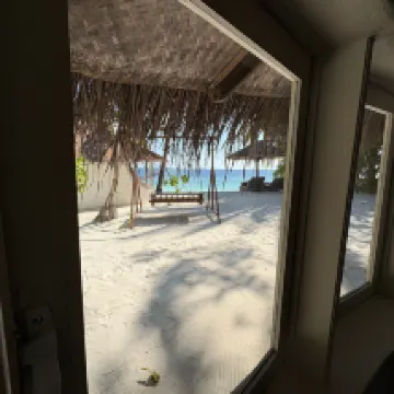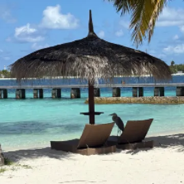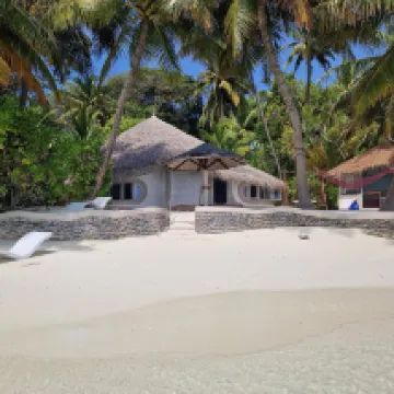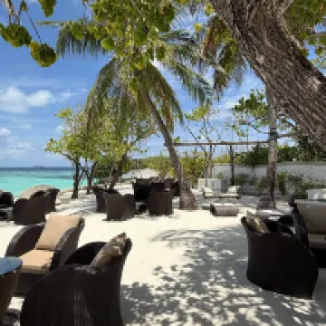 Отдыхали вдвоем с мужем в конце октября 2025. Основной целью был снорклинг и съемки подводного мира. Также хотелось поплавать с китовыми акулами и мантами. Получилось все, кроме китовых акул: для поездки к месту их обитания надо было набрать 8 человек, но экскурсия достаточно дорогая ($250 плюс налоги), так что группа не собралась. Съездили на плавание с мантами, черепахами, акулами-няньками. Риф вокруг отеля вполне приличный, есть что поснимать: рыбы, что примечательно гораздо крупнее, чем те же в Шарм-эль-Шейхе, много черноперых акул, есть черепахи, скаты, осьминоги, но их надо поискать. Встречаются необычные морские звезды (просто пятиугольник, без лучей). С инструктором от местного дайвинг-клуба сплавали на ночной снорклинг на домашнем рифе. В свете синего фонаря многое кораллы светятся. Очень красиво и необычно. Про отель: впечатления вполне положительные: вежливый персонал, на наш вкус хорошая еда (без особой экзотики, разве что иногда острая, но не слишком), на завтрак, обед и ужин - несколько видов фруктов. На удивление, более или менее нормальные соки на завтрак, похожи на обычные пакетированные, а не разведенная химия, как в Турции и Египте. Есть русскоговорящая девушка-гид по экскурсиям (и по любым другим вопросам) Диана. У нас была самая простая гарден-вилла, но и она достаточно просторная, есть все необходимое: кондиционер, чайник, фен и т.д. Повеселило наличие 2го душа прямо под открытым небом. Приятной неожиданностью было поздравление мужа с днем рождения: вернувшись с пляжа мы обнаружили украшенную поздравлением кровать, а вечером в ресторане нам подарили тортик, и 5 официантов исполнили на местном языке, вероятно что-то вроде "happy birthday", хотя по мотиву больше напоминало на "Каравай, каравай...". Фичи отеля: вода не привозная, а из собственной скважины на острове (хотя и совершенно не понятно, откуда под дном океана берется пресная вода), практически полное отсутствие пластика, (из исключений, которые мы видели, только пляжные лежаки, возможно полы в домике: больше похоже на ламинат), есть маленький музей про историю острова, отеля и Мальдивских островов. Сам остров очень зеленый, везде пальмы, цветы, местная достопримечательность - несколько бенгальских фикусов-баньянов. На дереве рядом с рестораном живут 2 попугая (большой ара и маленький желтый). Их можно кормить фруктами и орехами из ресторана, и они очень забавно их едят. Из минусов: все достаточно дорого: и экскурсии, и сувениры, и, конечно, печалит необходимость покупки воды (цена $2, с налогами выходит $2, 57 за литр). 1 бутылки (1 литр) в день на 2х человек, которые предоставляет отель, конечно, маловато. Приходилось каждый день покупать еще бутылку на обед и бутылку на ужин. Кроме того, в номере не было зубной пасты и крема для бритья. Погода была разнообразная: пару дней было достаточно дождливо. Яркого солнца практически не было, в основном было облачно, что вблизи от экватора даже и не плохо. В общем, отдых нам понравился.