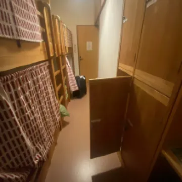 地點很好,距離出町柳站步行6分鐘,附近有便利商店和超市。 二樓公共空間設有廚房,對於想要自己做飯的人來說非常方便。還有免費飲料漫畫和書籍。 三樓是宿舍空間,有空調,乾淨,但是如果是男女混合的話,上舖的床沒有完全隔斷,無法保持隱私,而且有點緊,尤其是對於女性。我覺得還可以,因為下層的窗簾可以關上… 2樓和3樓設有淋浴和衛生間。人多的時候還好,人多的時候就得排隊了。 有宵禁,早上6:00前不能出門,對於一大早就想出門的人來說可能有點不方便。