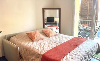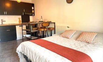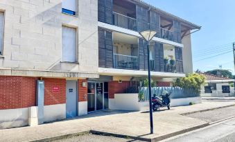 La Teste de Buch: Beautiful residence "L'Agathe". In a central position, 3.6 km from the sea, 3.6 km from the beach. In the complex: lift. Grocery, supermarket 260 m, shopping centre 1.1 km, restaurant 400 m, bar 240 m, bakery 550 m, bus stop "Gare de La Teste de Buch" 750 m, railway station "La Teste de Buch" 750 m, sandy beach "Aiguillon" 3.6 km, park "Mauresque" 4.4 km, thermal baths "Thalazur" 6 km. Sports harbour 4.7 km, golf course (18 hole) 3.2 km. Nearby attractions: Dune du Pyla 9.6 km, Eratopia 5.3 km, Navette Maritime pour le Cap Ferret 5.6 km, Marché Municipal 700 m, Observatoire Sainte Cécile 5.5 km, ArcaJetMarine 4.1 km. Well-known lakes can easily be reached: Lac de la Magdeleine 6.9 km, Lac de Cazaux 11.9 km. The keys‘ handover takes place by the agency Interhome in Arcachon, 5 km. 2-room apartment 48 m2 on 1st floor. Beautiful and tasteful furnishings: living/dining room with 1 double sofabed (1 x 140 cm, length 190 cm), TV (flat screen). Exit to the terrace. 1 room with 1 french bed (1 x 140 cm, length 190 cm). Open kitchen (oven, dishwasher, 4 induction hot plates, toaster, kettle, microwave, freezer, electric coffee machine). Shower/WC. Gas heating. Terrace 10 m2, north facing position and west facing position. Terrace furniture. Facilities: washing machine, iron, hair dryer. Internet (WiFi, free). Parking space n 74 (fenced 1 car). Please note: smoke alarm. Offer by a private individual according to Art. 155, IV of CGI. 33529001997F3