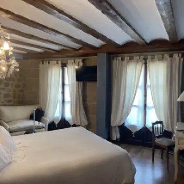 Perfect location in the middle of the town and right by the clock with the dancing figures. Lovely bodega bar downstairs. Rooms are spacious and comfortable.
