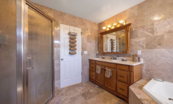 Master Bedroom, you will have access to the the spacious & elegant Bath at is layered in Italian Marble , it includes a 2-3 person Jacuzzi, stand up shower & double vanity .