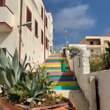 Adiacente alla scala colorata del porto vecchio e comodissima la posizione sia per il centro ( via Roma a due passi) , per i negozi ( ottimo il panificio Luca ed bar sulla spiaggia per la colazione, adiacente ad un market con ottima carne) sia per le spiagge. Appartamento molto spazioso, completo di tutto e molto pulito ; letto comodo e posizione tranquilla e silenziosa . Teli mare ed ombrellone a disposizione che per chi viene in aereo è decisamente comodo trovare! Personale gentilissimo ed attento alla clientela , comodo il transfer incluso per aereoporto . La summer bag in omaggio ed il set colazione trovato insieme a delle bibite fresche ha reso davvero splendido il ns soggiorno