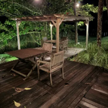 Quelques cabines en bois sur pilotis sympathiques et confortables autour d’une piscine, calme troublé principalement par les oiseaux, cuisine gastronomique, accueil attentionné : une belle découverte, à recommander sans hesitation