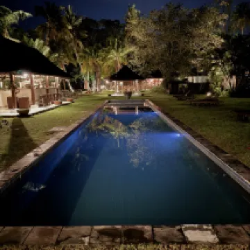 We stayed five nights at this unique property. The Villa are comfortable and well appointed with antique furniture. Beds are equipped with bug nets which is both practical and romantic. The large pool is centrally located and is the perfect spot to relax, enjoy a cool drink and observe the wild bird activity. The property is shared with an animal rescue facility so you will encounter friendly cats and dogs wondering freely. The hotel sponsors artists and we were enormously fortunate to meet the artist in residence during our stay. The onsite restaurant serves a daily lunch and dinner menu which we frequented. The food was outstanding as was the service.