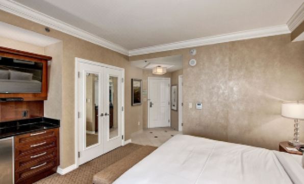 Signature 酒店是一家專屬的封閉式度假村,通過空調自動步道與米高梅大酒店相連。我們精美的豪華套房面積達 550 平方英尺(約 51 平方米)。套房配備一張特大床、一張可拉出的雙人沙发床、一間帶按摩浴缸的浴室、兩台等離子電視、迷你廚房等設施。請注意,套房內不提供餐具和廚具。您可以在抵達時向前台提出要求,或從套房內致電前台。套房設有可直通室外的陽台,讓您盡情欣賞拉斯維加斯的迷人景色。套房內及陽台均禁止吸煙。酒店將收取 500 美元的吸煙/吸食大麻電子煙損壞費,用於處理套房的損壞。