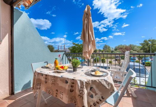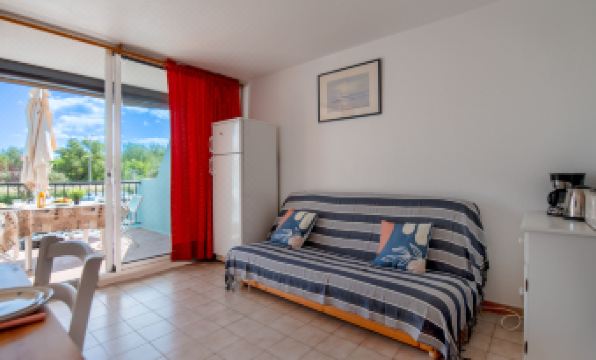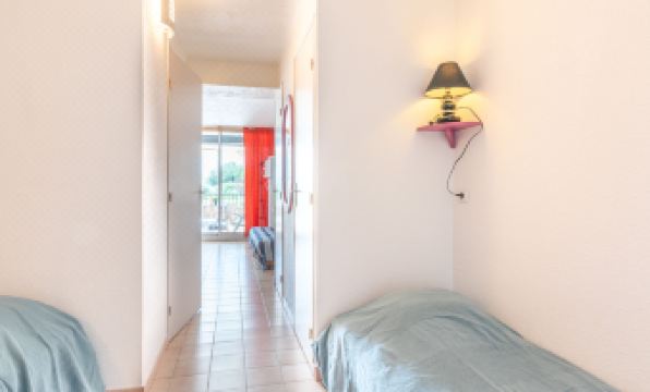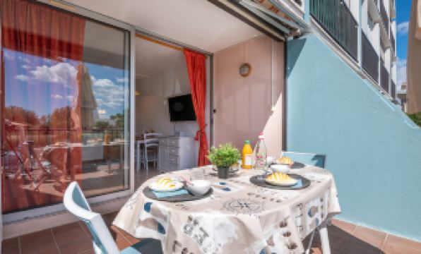 Residence "Le Lagon Bleu", 4 storeys. In the district of le Palais de la Mer 2 km from the centre of le Grau du Roi, 700 m from the sea, 650 m from the beach. For shared use: swimming pool round (seasonal availability: 15.Jun. - 15.Sep.). In the complex: lift. Shop, restaurant 300 m, bus stop "HLM" 750 m, railway station 2 km, sandy beach "Nord" 800 m, outdoor swimming pool 2.1 km, thermal baths "Thalazur" 4.5 km. Nearby attractions: Casino Flamand 800 m, Seaquarium 1.4 km, Arènes Grau du Roi 3.2 km, Aigues Mortes 8.5 km, La Grande Motte 12 km, Nîmes 52 km. Hiking paths: Reserve Naturelle De Camargue. Please note: the keys‘ handover takes place by the agency Interhome in Port Camargue, 2 km. Main road close by. Airfield 25 km from the property. "Le Lagon Bleu", 1-room studio 27 m2, on the ground floor. Beautiful furnishings: living/dining room with 1 double sofabed (140 cm, length 200 cm), TV (flat screen). Entrance hall with 1 sofabed (120 cm, length 190 cm). Kitchenette (2 ceramic glass hob hotplates, toaster, kettle, microwave, freezer, electric coffee machine). Shower, sep. WC. Terrace 10 m2, south facing position. Terrace furniture. Facilities: Internet (WiFi, extra). Please note: no parking. Maximum 1 pet/ dog allowed. Smoke alarm. Offer by a private individual according to Art. 155, IV of CGI.