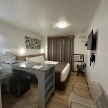 My wife and I stayed 3 nights, arriving from DRP Airport at 2PM by group van($6) to the bus station and walking 600m to this hotel. Welcoming receptionists copied our passports, checked our prepayment, presented our key card, then we followed the porter carrying our bags to their elevator. The 3rd floor #325 Queen(designed for 1 person)was too small; Sarah was very helpful in getting us moved. #345 Twin was wood floored and clean with cold water wash basin and shelf(with refer, coffee, hotpot & water), bathroom with a hot water shower & nice towels, comfortable twins across a medium TV(we watched Youtube), short clothes rod, 2 chairs, good lighting, secure wifi, 5 outlets, wall AC and an opening window with a quiet courtyard(parking) view. The 6AM breakfast buffet was good and well serviced with blue lemonade/fresh fruit, children’s cereals, egg station, white bread, cakes, regular coffee and numerous Philippine hot selections. We walked 100m to the Pacific Mall’s restaurants/Metro supermarket.