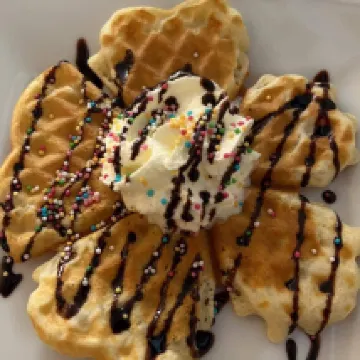 A nice place to stay in Bohemia as it is in reasonable distance to mountains for hiking. We were three people in a room. The room was quite small so more than three nights would have been too cramped. There was a bathroom with a shower and also a small kitchen with the necessary equipment. Breakfast was very good with quite an impressive selection of dishes including scrambled eggs etc. You could also make your own waffles 😊