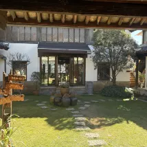 民宿坐落在古鎮內,全木結構建築,佔地面積很大,一步一景園林景觀和住宅交相呼應,相得益彰。此外,民宿的公共休閑區域極大,有非常多的小角落可以落座感受陽光和植物。民宿工作人員服務很周到,整體入住體驗很好!