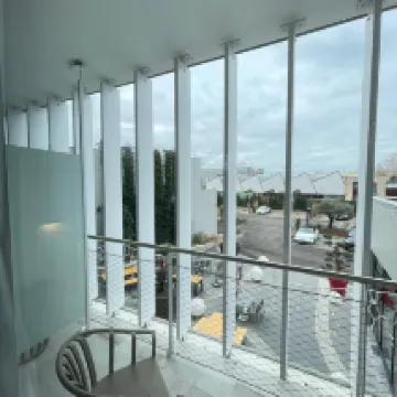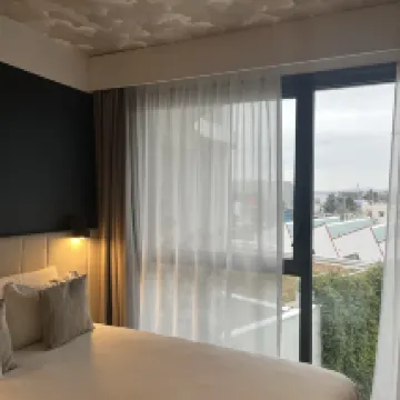 美麗的房間擁有現代而精緻的設計。床品超舒服!!!非常感激! 房間設有宜人的陽台。 我強烈推薦這家酒店。