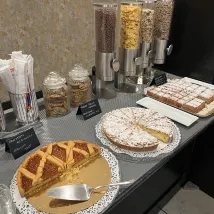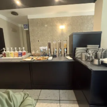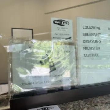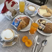 客房條件就別指望了,平淡無奇,院子大,房間小,也沒有國人摯愛的電燒壺,有提供拖鞋但是薄如蟬翼。洗澡的洗護也不太好用,如果自己帶了就用自己的好了。 唯一稱讚的是早餐不錯,麻雀雖小,五臟俱全。冷餐熱食都有,還能現場煎蛋。咖啡也還不錯,畢竟是意大利👍哈哈哈