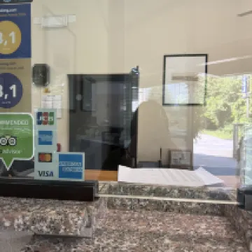 四星級飯店,但很多地方需要改進。隔音效果非常差,隔壁房間有噪音,其他房間有下水道噪音,浴室很舊,需要翻新,沒有通風,淋浴後會產生一層濕氣,用吹風機吹乾鏡子 5 分鐘後才能再次看到……床墊很硬,早餐工作人員不太熱情,似乎很生氣……無線網絡連接鏡子很差 好處是你可以把車停在房間前面。 對於那些可以住一晚的人來說,這很好。