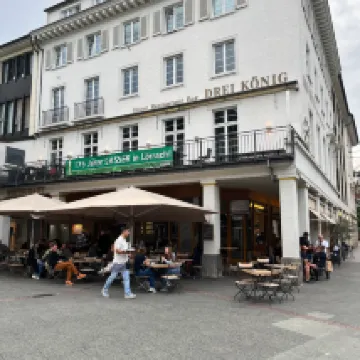 Love this place. Located in the center of town, close to good restaurants and bars. In 5 minutes you are in Switzerland or France. Appreciate the free water and the friendly service. The breakfast buffet is definitely worth the 8 Euros, with fresh bread, buns, jam, eggs, yoghurt, juice, cappuccino and much more.