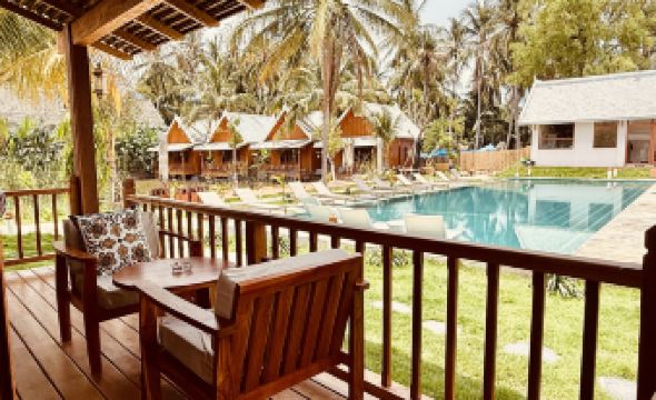 - 游泳、騎行、重複享受。 在椰樹環繞的泳池中暢遊,然後騎上免費單車,幾分鐘即可到達普西山或香通寺。