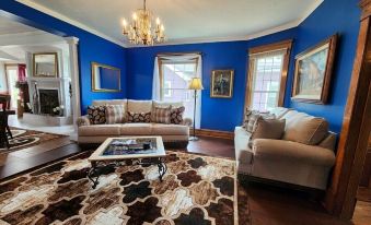 This late 1800's home has many original unique characteristics like the large pocket doors to the Parlor but has been modernized like no other. Decorated for the season, The home provides 3500 Sq' of space for larger groups or family's while also providing privacy when needed. Four Bedrooms and three full modernized Bathrooms. A Rear fenced in back yard with Deck space is great for cookouts and relaxing! Gas or Charcoal grill? We have both to choose from. A Pond and Waterfall, Tiki Torches and a fire pit area for your enjoyment. A Gourmet Kitchen for Family meals. This Home offers a short walk to downtown Ludington and all of the Restaurants, Shops and Excitement. 4 blocks from the marinas, and less than 10 blocks from Lake Michigan! We offer 12 Bikes of all sizes. 6 Smart TV's for your streaming pleasure. We are on a quiet one way street 1 block off of Ludington Ave. and 1.5 blocks off of James St. Parking we have 2 spaces in the front Driveway and 1 space in the rear alley along with a full parking lane on the road. Just bring cloths and food, Little P and I have worked hard to make sure we have supplied everything else you should need while on your stay. Thank you and we look forward to Hosting you soon.