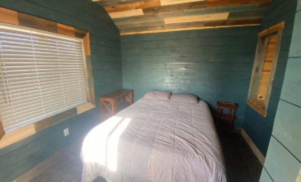 Discover the Covered Porch Hideaway at Luverne Campground, a charming 2-bedroom tiny home on the lakefront. Relax on the spacious covered porch with stunning views, perfect for enjoying your morning coffee or evening sunsets. Inside, the cozy home offers a comfortable, well-equipped space designed for ultimate relaxation. This peaceful retreat is your ideal getaway.