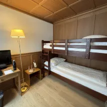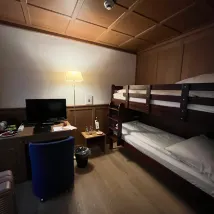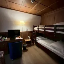 訂3人房,給4人房(1張大床和上下舖),空間還算寬敞,交通非常便利,走路約5分鐘可到車站,附近有超市和麥當勞,晨起就可走路到卡貝爾橋河畔散步