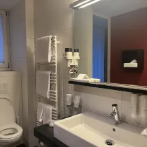 位置不錯 很方便 離火車站很近 五六分鐘路程 拉行李箱好走的 checkin需要到旁邊monopol酒店前台 checkout如果不需要寄存可以自助checkout 如果要寄存還是去回monopol存比較好 酒店比想象中小 電梯很迷你 進兩個女生和箱子很勉強 胖一點衹能一人一箱上去 房間有點陰暗 卧室區和洗手間面積基本上是1:1 洗手間偏大 卧室偏小了 兩個行李箱展開放剛剛好