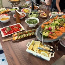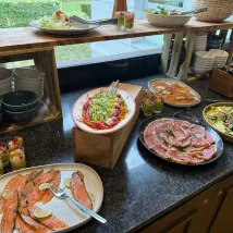Le service à la brasserie était d'une lenteur incroyable alors que le restaurant ne comptait que 4 tables occupées. Certes il y avait un mariage mais avec une quarantaine de personnes seulement. Le barbecue ne présente pas d'intérêt, les tomates en entrée avaient la peau molle, bref excepté les desserts le niveau de restauration est juste correct. 2h30 d'attente avec 1 bébé et un enfant de 2ans, impensable. C'est dommage car nous avons tout de même payé 200 euros! L'emplacement est sympa mais le reste est à améliorer sauf à perdre des clients.