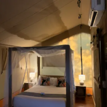 We highly recommend the restaurant offerings and reasonably priced at 85$ pp for 3 courses. The tents were clean and comfortable. The AC unit was a welcome addition during our hot trip. The 2.5km walk around the winery was a nice way to finish off the evening. Unfortunately the let down was close proximity of tents and noisey neighbours. We politely spoke with them to no avail and the reception staff member neither acknowledged, validated or dealing with the issue.