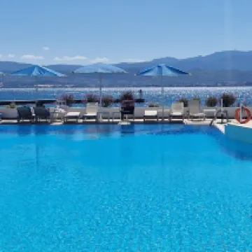 Bâtiment principal de l'hôtel offre une très belle vue sur le golfe et la piscine surtout en étage élevé. Situé dans un très beau parc planté d'oliviers anciens et au bord du golfe. Chambre assez grande mais pas très cosy, manque de rangement, pas d'étagères accessibles. Balcon sympa avec la vue mer mais rambarde demande à être rénovée. Un miroir grossissant serait bien dans la salle de bain. Les chaînes télés sont étrangères, 1 seule en français TV5 monde. Hôtel très propre, personnel de l'accueil et de ménages professionnels et agréables. Restauration correcte mais point dur, les plats sont à peine tièdes...même si vous arrivez à l'ouverture.... possibilité de manger sur la terrasse. Ce qui est agréable quand il fait beau. Plage agréable (pas vraiment du sable fin) avec transats Belle piscine, à éviter le week-end car les grecs viennent passer le week-end en famille et avec animaux. Du coup beaucoup de bruit... Animations fram pour ceux qui veulent en profiter. Bonus avec Florence qui organise parfaitement les excursions, notamment Athènes avec guide très intéressante. Réserve aussi la voiture et propose des idées des circuits sur Eubée. On recommande cet hôtel.