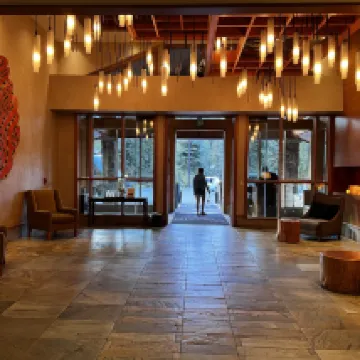 Perfect location in the heart of Mammoth Lakes. Great amenities including pool, jacuzzi and 24/7 fitness center and a good (but expensive) restaurant built in downstairs. Free self-parking. Great and friendly service. The room is gorgeous and has a spectacular view of the mountains.