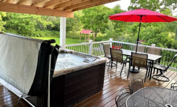 This was an ideal property and location for our family reunion group of 13 (without needing the additional suite). The large living room and back porch both provided great spaces for gathering and time together. The nearby town of Ellicottville (about 11 minutes away) offers numerous walkable restaurants and shops.The listing, as far as I have found, does not include very many details about the air conditioning. There are two window AC units in the house (not counting the suite, which we did not use), located in two of the upstairs bedrooms. There are ceiling and/or portable box fans, as well. This was sufficient for our group with the weather we had, but be aware that not every bedroom (or other areas of the home) has (have) AC.Would stay again with a similar group size if coming back to this area. We had a wonderful time here.