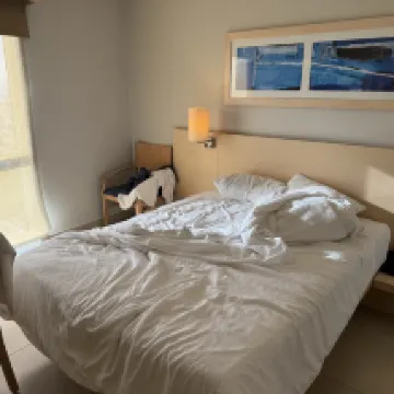 El lugar limpio y básico, es lo que es, un lugar para llegar a dormir. La TV muy pequeña y de mala calidad, la imagen no tan clara. De ahí en más, lo básico estaba. Lo que no está bien es el servicio. Las recepcionistas son para nada atentas, tratan de cumplir con su trabajo pero hasta atendiéndote se quejan entre ellas de lo que tienen que hacer. La ubicación del hotel es privilegiada. Buena ubicación.