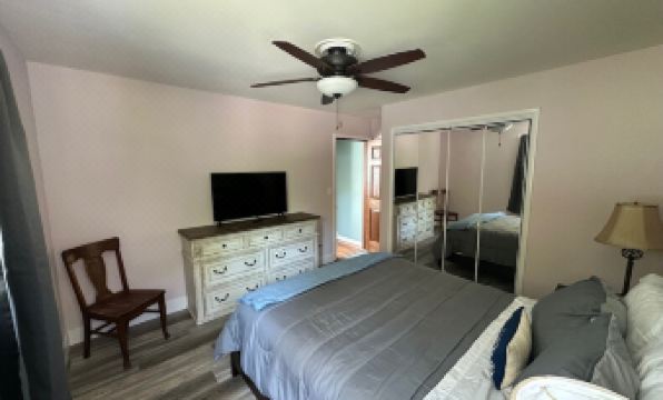 This delightful property features 2 queen beds and 1 bunk bed, perfect for families or groups of friends. With amenities like WiFi, AC, hot tub, kayaks, dock and boat house with a deck featuring a solo stove firepit and seating, guests can feel right at home.